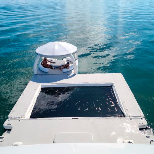 The POP 2 pool connects to any Push Off Bana ™ to create a pool area behind the boat, dock, walkway or connect it to another Aquabanas ™ structure for more functionality!